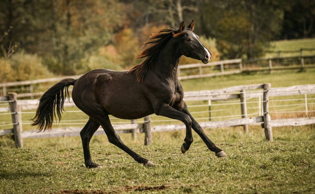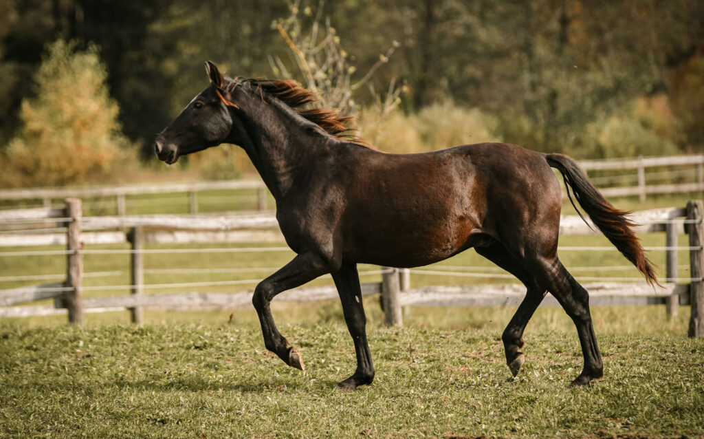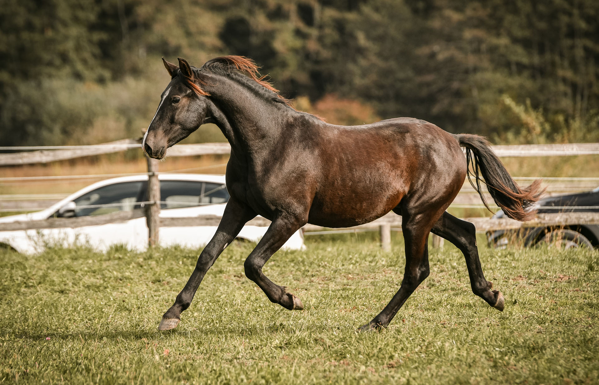 Zum Verkauf steht ein vielversprechender Leonharder Hengst der F2 Generation, geboren im Jahr 2024. Mit seinem eleganten dunklen Braun und einem EndStockmaß von 152-155 cm ist er ein attraktiver Nachwuchsstern für die Working Equitation.